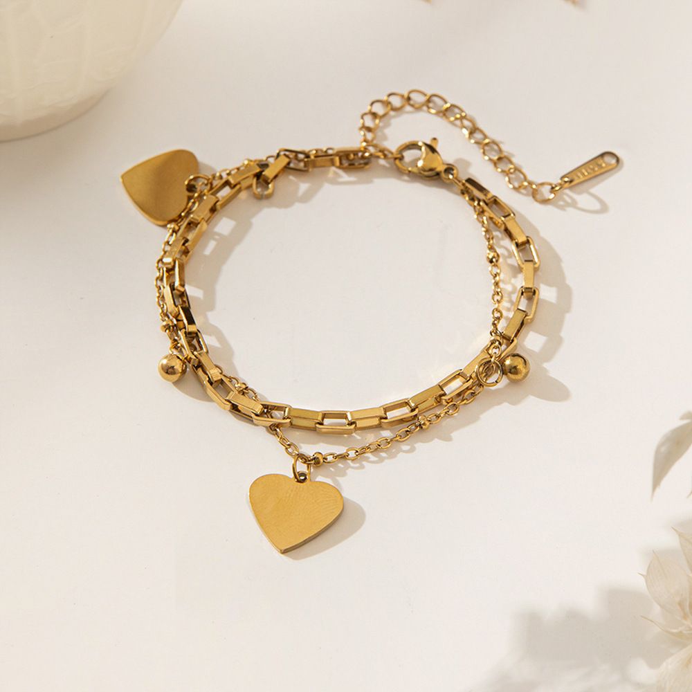 MYKI Gold-Plated Heart Charm Layered Bracelet(MKBRAD858G-SSYI)